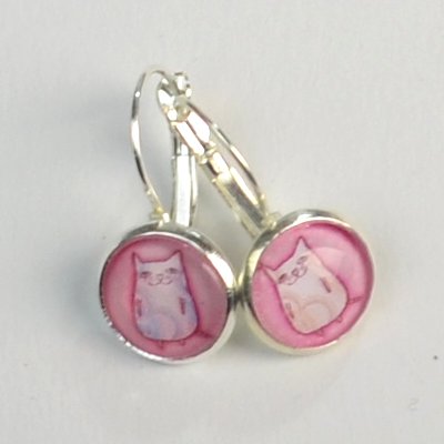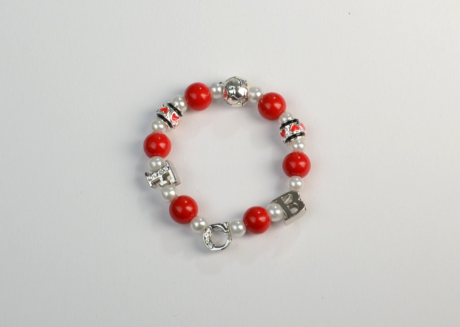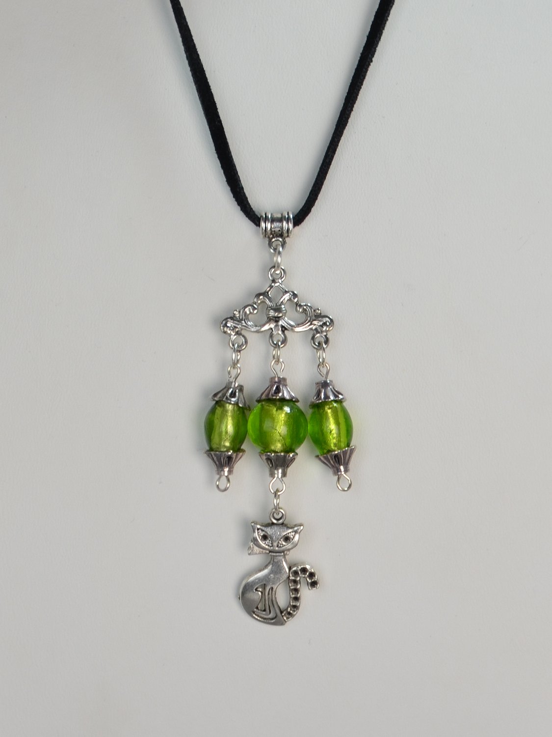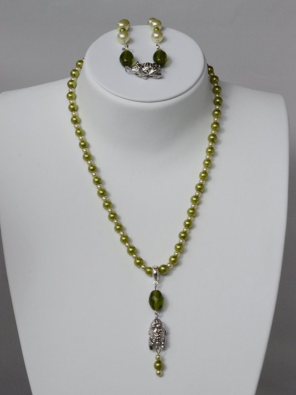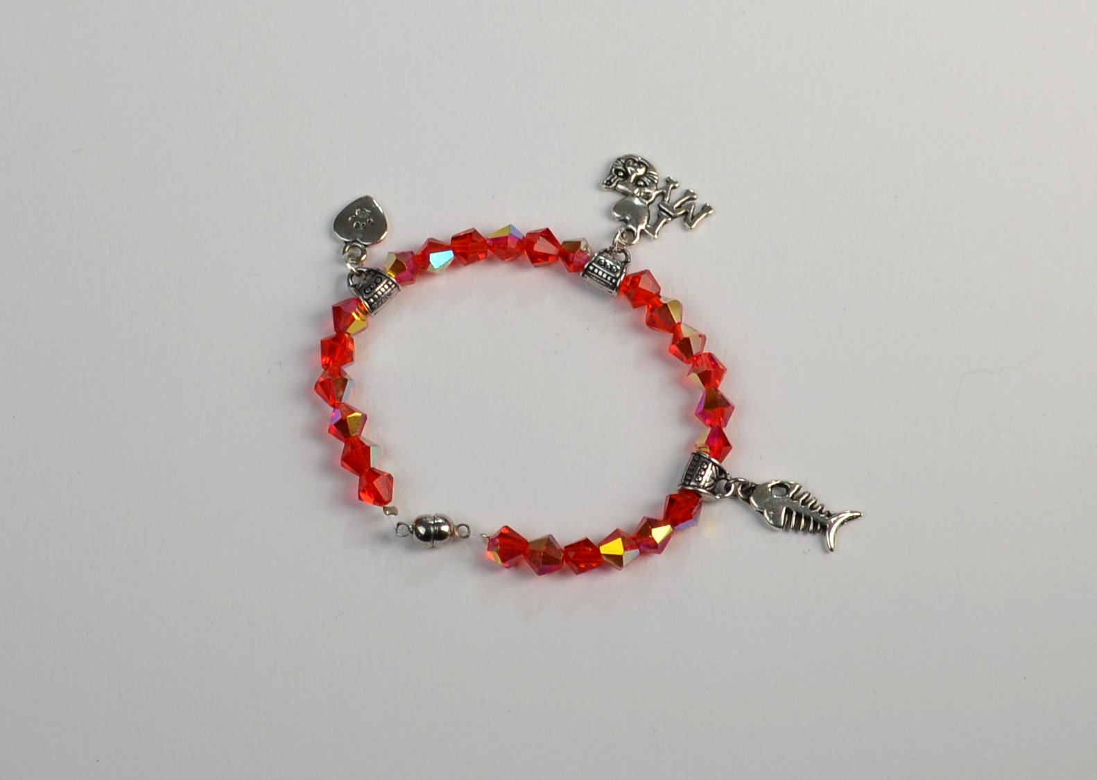 Weiße Glasperlen, fliederfarbene Glassternchen, dunkel fliederfarbene Bicone Glasschliffperlen, rundes Medaillon mit Engel | Verschluss: Kugelmagnet, silberfarben