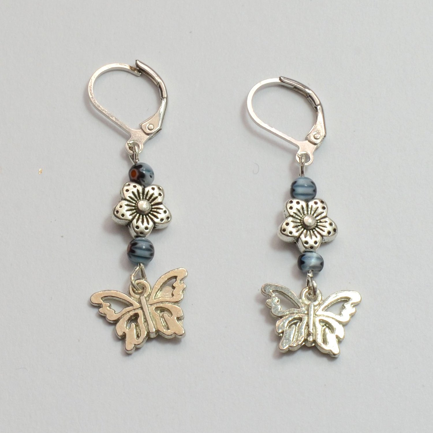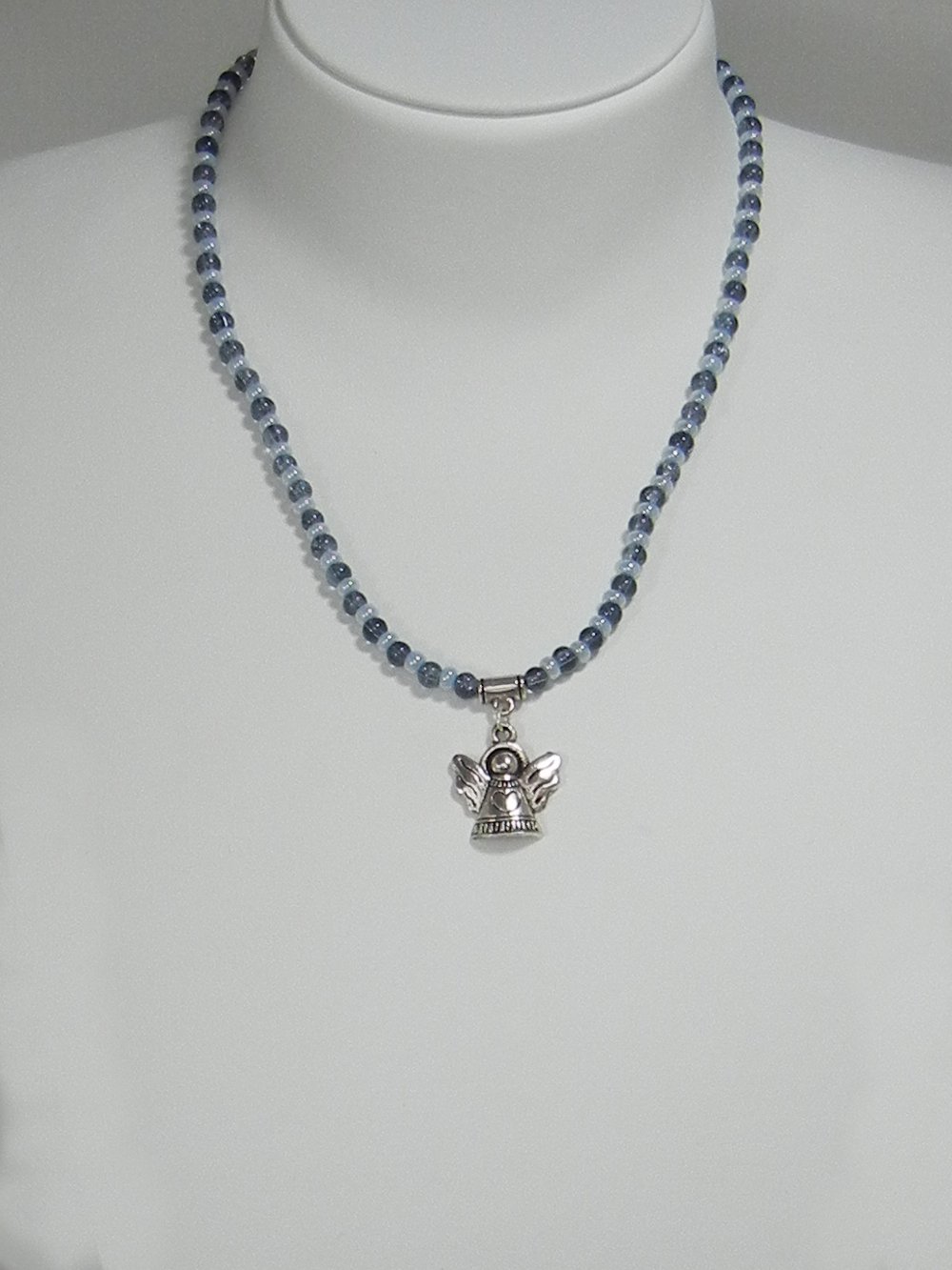 Aquablaue Rocailles, graublaue Crackle-Glasperlen, Engel-Anh