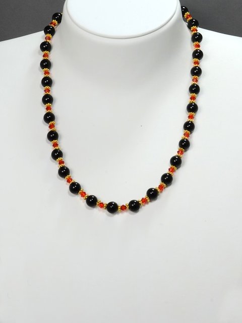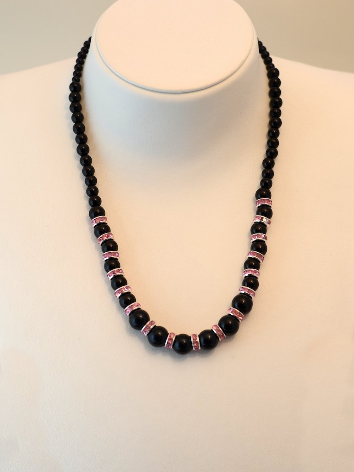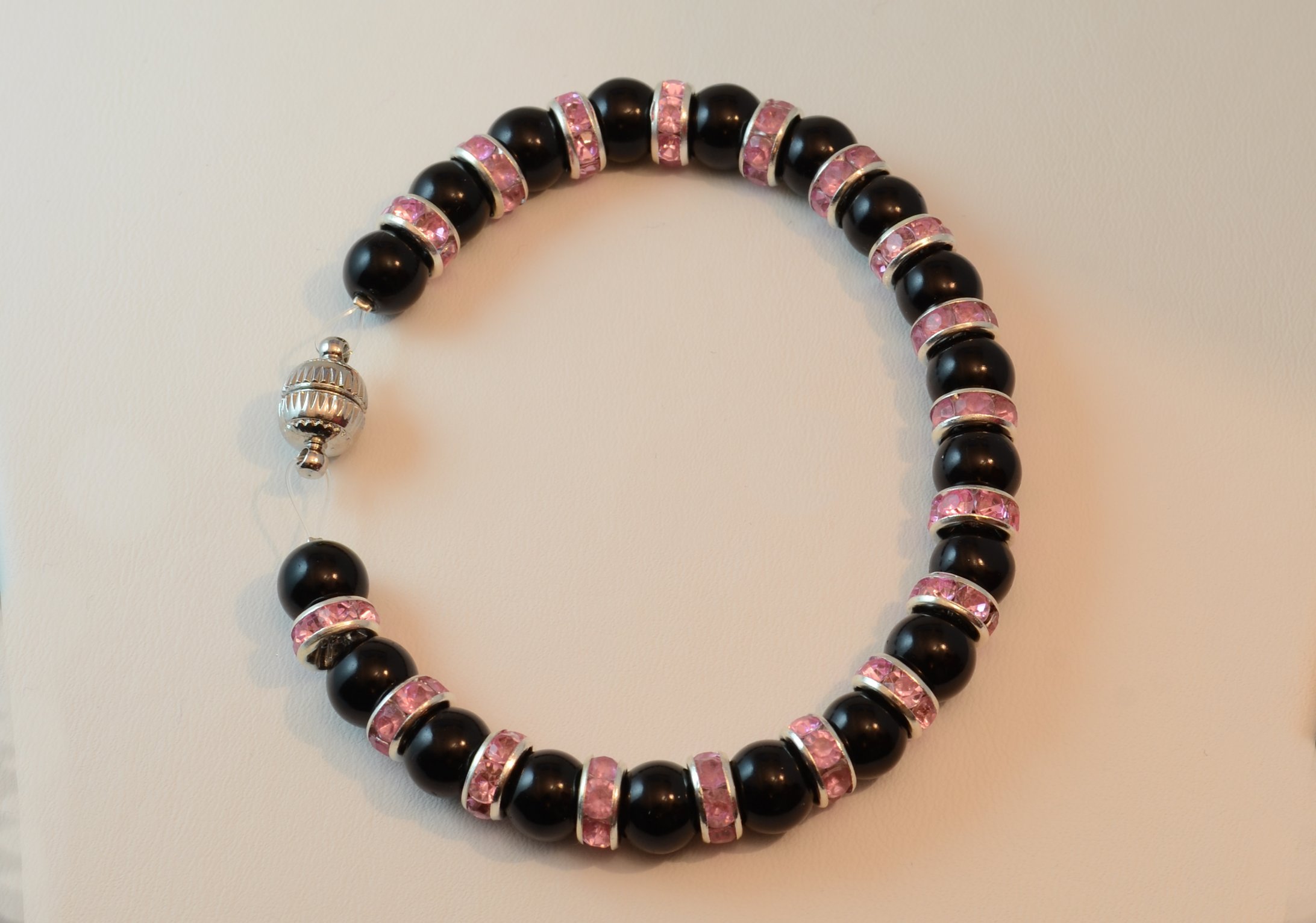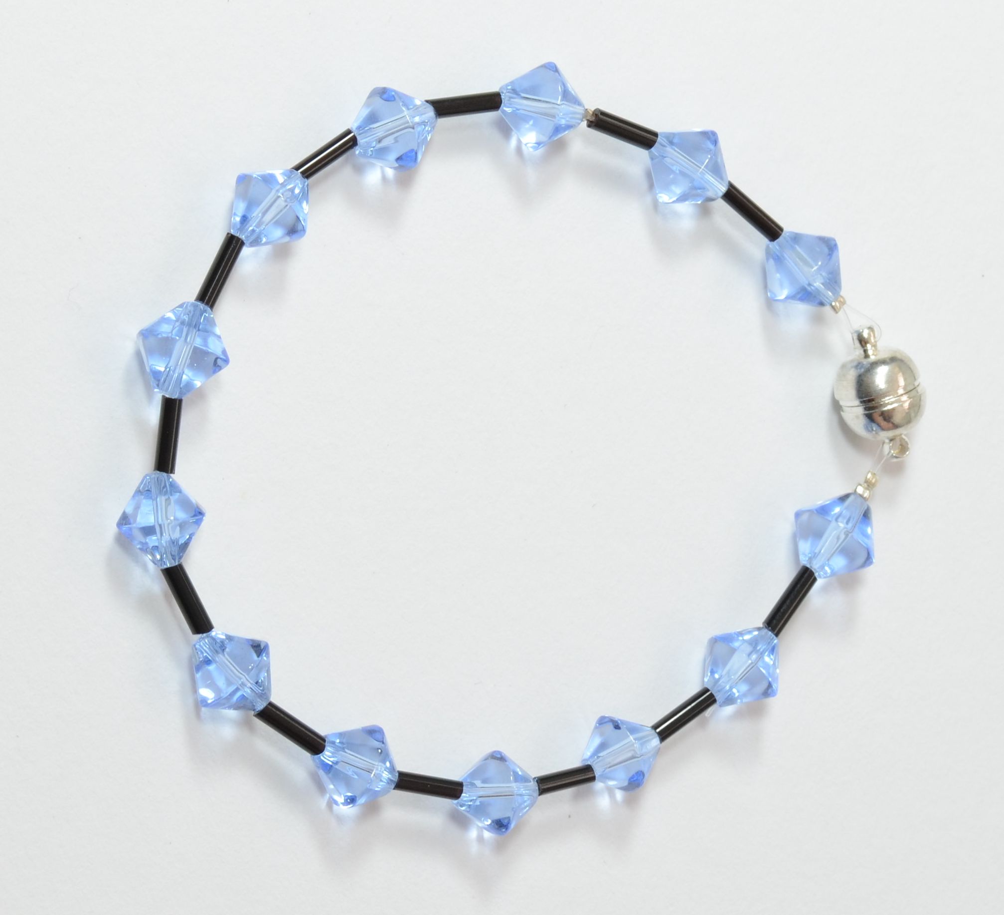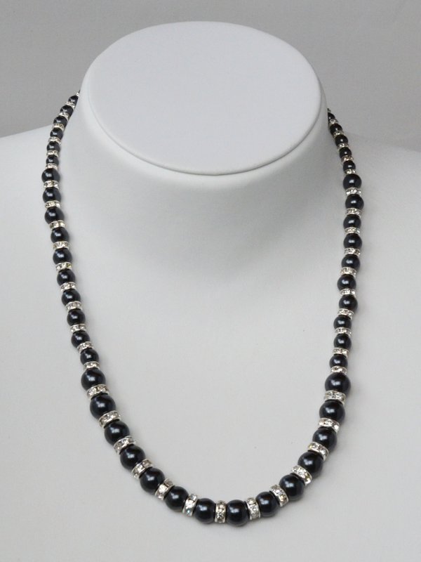 Knotenkette mit facettierten Glasschliffperlen silberfarben, Glaswachsperlen schwarz | Verschluss: Kugelmagnet gro