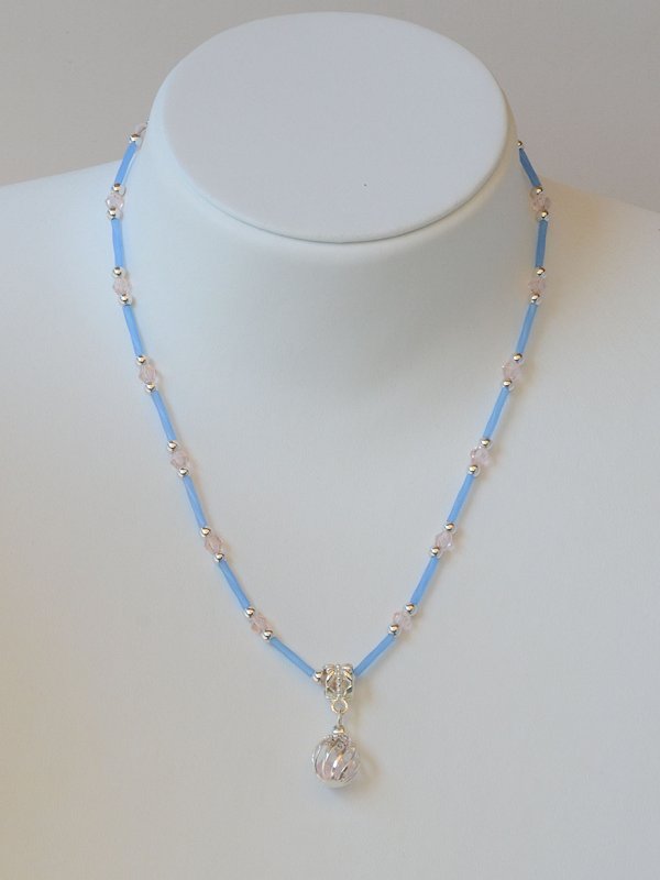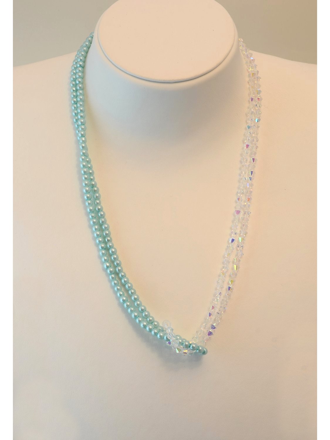 Knotenkette mit facettierten Glasschliffperlen transparent-irisierend, Glaswachsperlen t