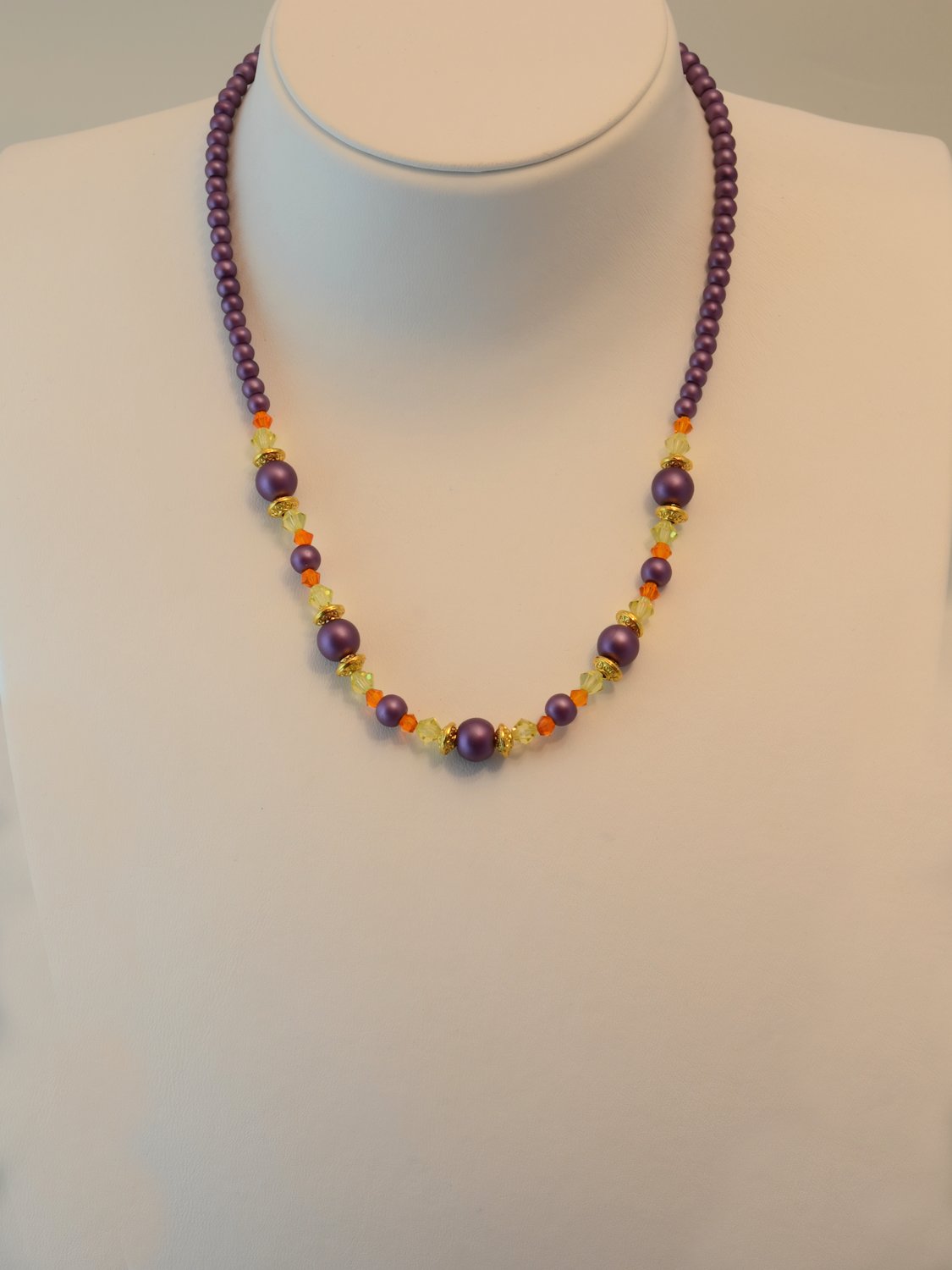 Knotenkette mit facettierten Glasschliffperlen hellviolett, Glaswachsperlen silbergrau | Verschluss: Magnetverschluss in Kugelform, silberfarben