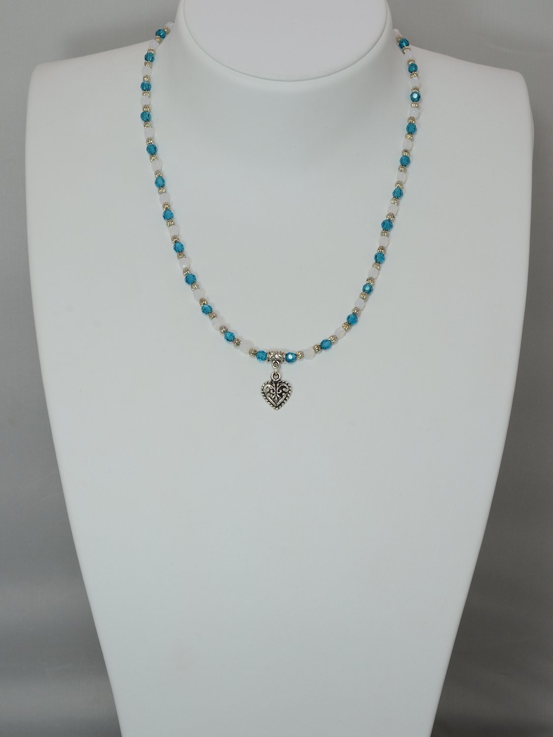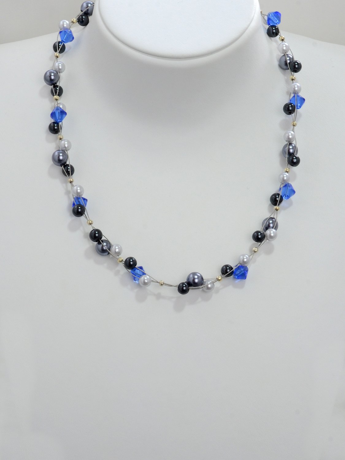 Knotenkette mit facettierten Glasschliffperlen türkis und blau | Verschluss: Kugelmagnet silberfarben