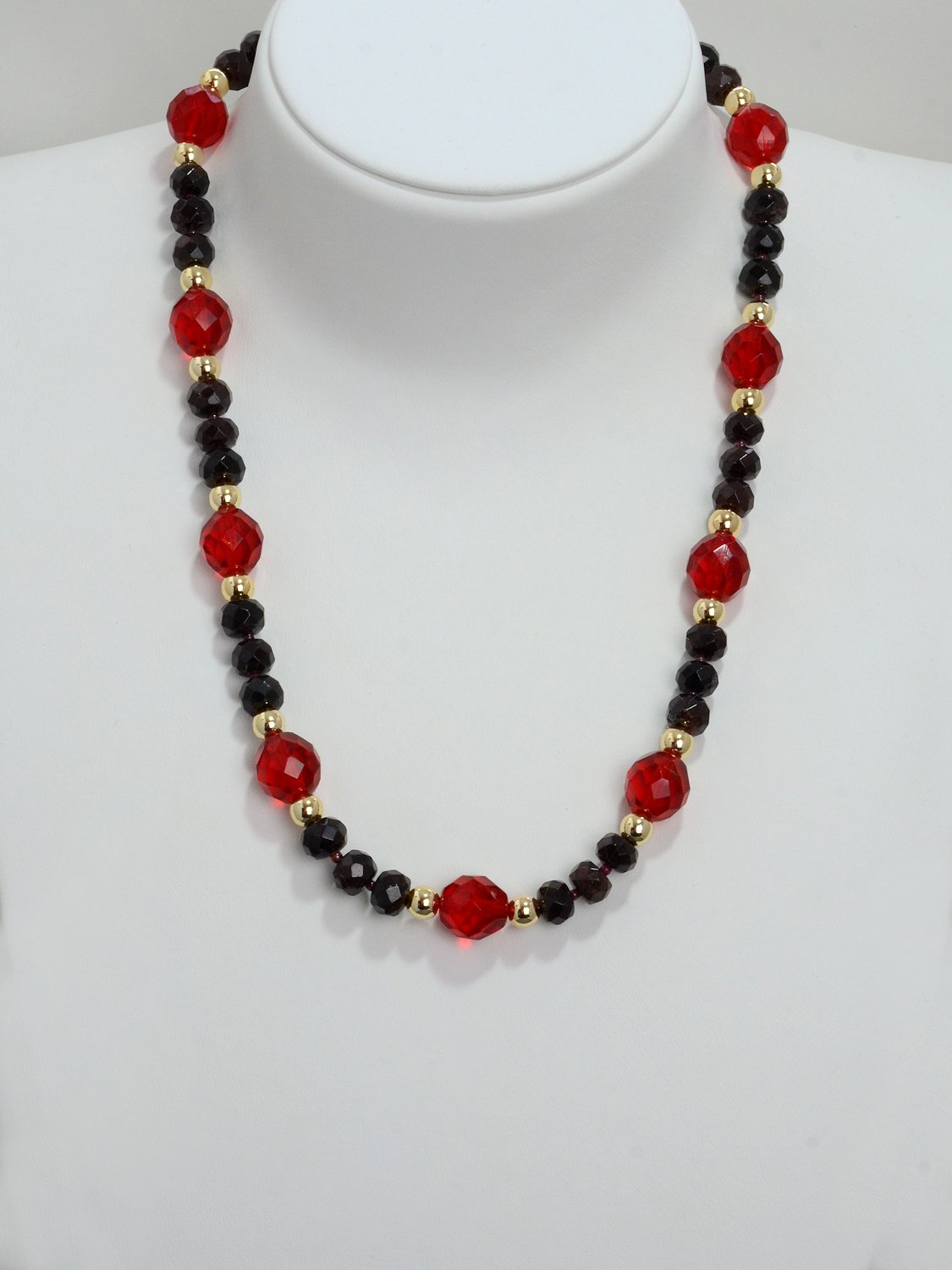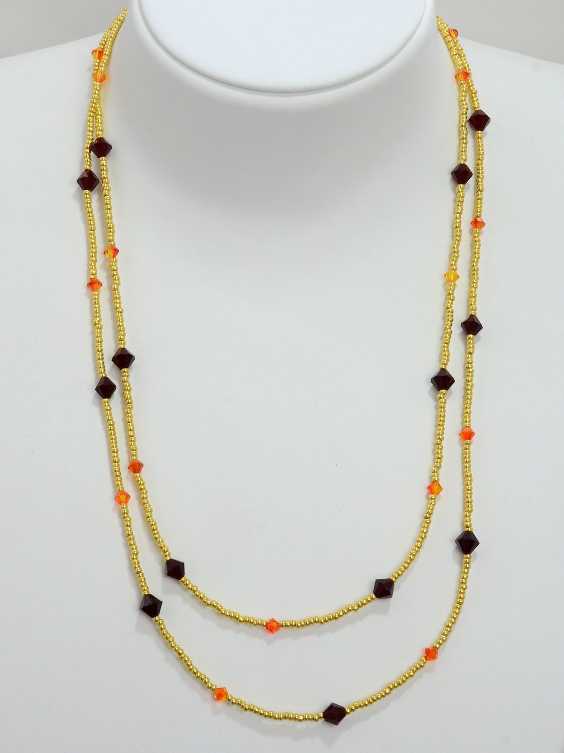 Knotenkette mit facettierten Glasschliffperlen bernstein und braun | Verschluss: Kugelmagnet goldfarben